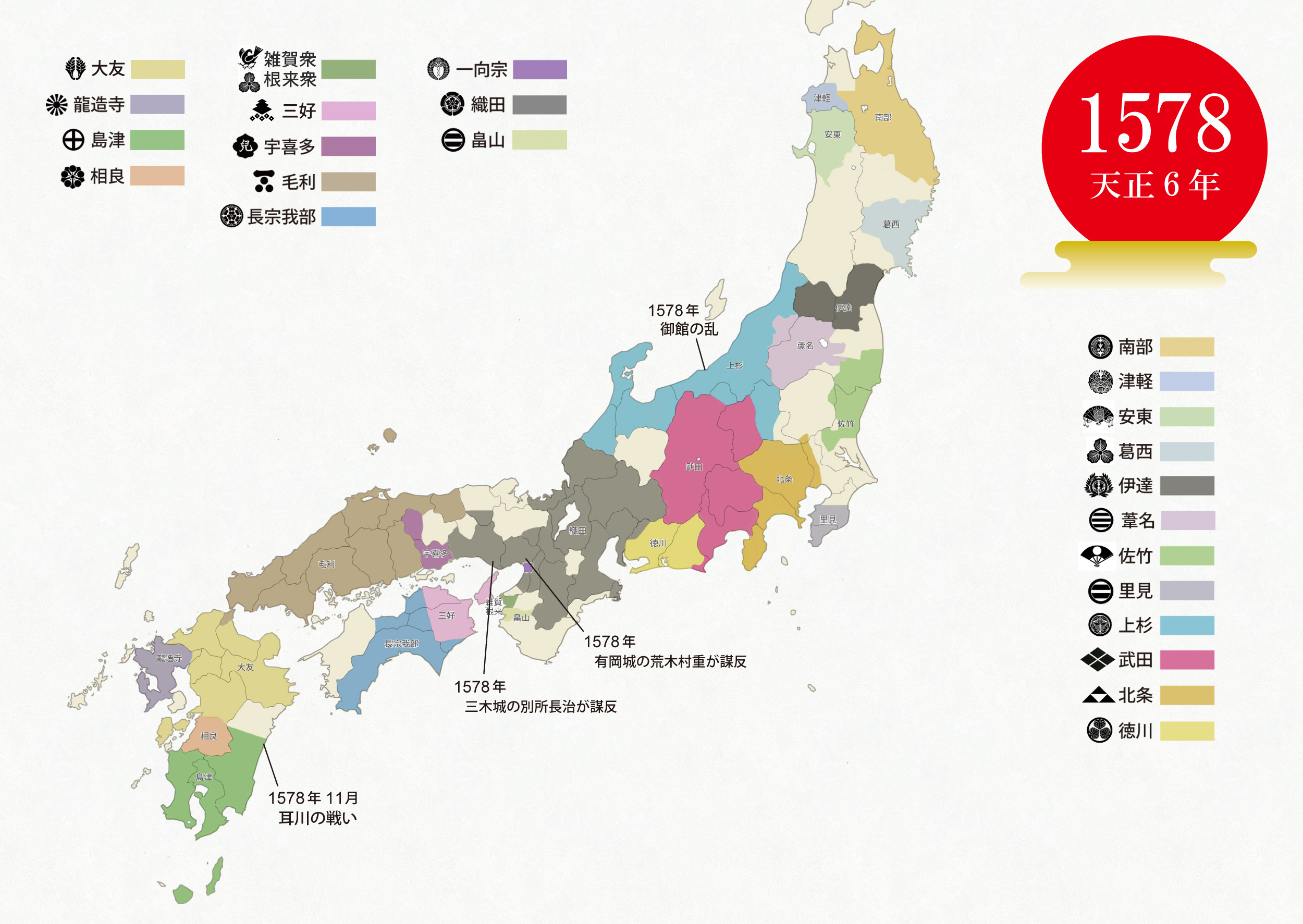 1578年 – 79年 御館の乱 耳川の戦い